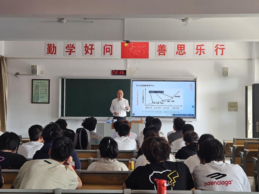 4月26日、5月21日,公司党委书记黄志良在6232教室,以“学习贯彻党的二十大精神,争当城乡建设绿色发展排头兵”为题,为建工22310班员工讲授了一堂生动、深刻的《形势与政策》课。黄志良从巴以冲突导入,引导员工思考“世界怎么了”、“人类向何处去”“我们怎么办”等一系列问题,结合“两个大局”分析中国为解决世界难题给出的中国方案。在讲授过程中,黄书记将理论与实际相结合,教学深入浅出,充分利用员工感兴趣、贴近员工学习生活的案例进行讲解,对“中国式现代化”展开深入且生动地解读。课上,黄志良还将教学与人才培养相结合,鼓励员工学好理论知识,掌握专业技能,培养工匠精神,在公司、在工作岗位、在个人生活等无论何时何地都能践行绿色理念,为美丽中国的建设、为现代化强国的实现添砖加瓦。
