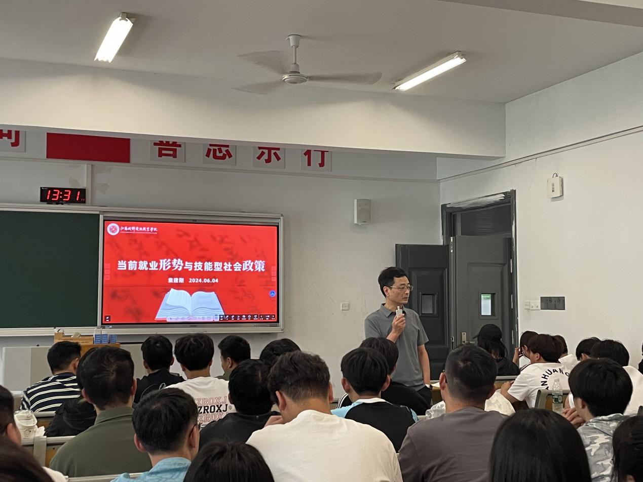 6月4日,公司党委委员、副董事长袁建刚在6106教室以《当前就业形势与技能型社会政策》为题,为暖通2231、物联网2232班员工讲授《形势与政策》课。袁建刚从“形势总体稳定”“就业压力仍存”“技能型社会建设”“高技能人才激励”四个方面展开课程教学。他以中共中央政治局5月27日下午进行的第十四次集体学习的主题:促进高质量充分就业引入,从国家政策、方针开始讲起,对我国经济和就业形势现状进行分析,进而结合员工学习和就业实际,说明了提升职业技能以提高就业能力的价值所在,以员工身边的人为例,教育引导员工增强学习和就业信心。